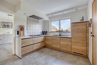 - Open keuken met koffie- en eethoek. De keuken werd vernieuwd in 2021 en is volledig uitgerust met een gasfornuis (Siemens), oven, microgolf, vaatwasser, anderhalve spoeltafel, koelkast, koffiehoek met inbouwkasten en ruimte voor een eettafel met stoelen.