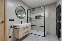 - Badkamer, volledig betegeld en ingericht met een wasmeubel met wastafel, inloopdouche en kolomkast.