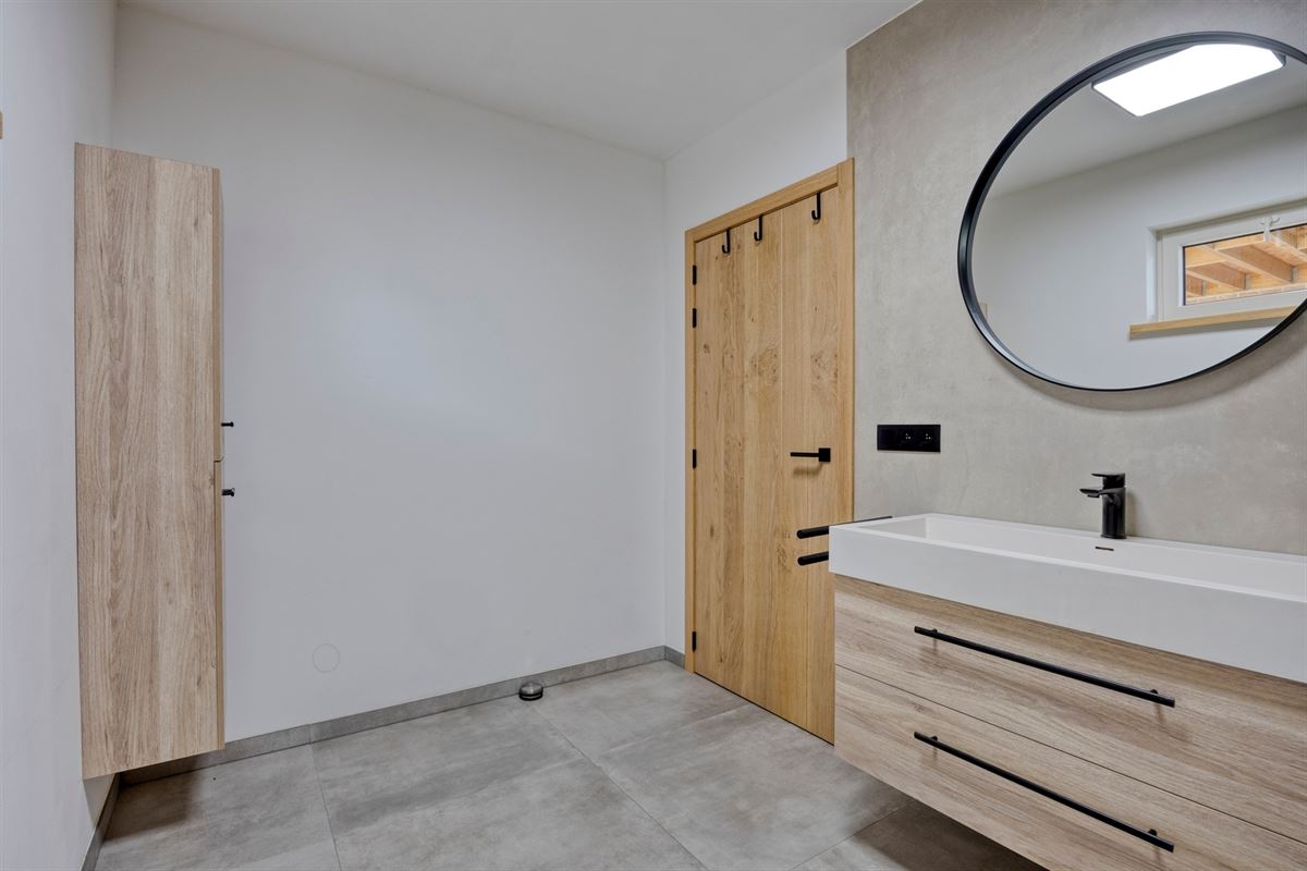 - Sas met toegang tot de keuken, tuin, het toilet, de badkamer en de inpandige garage.