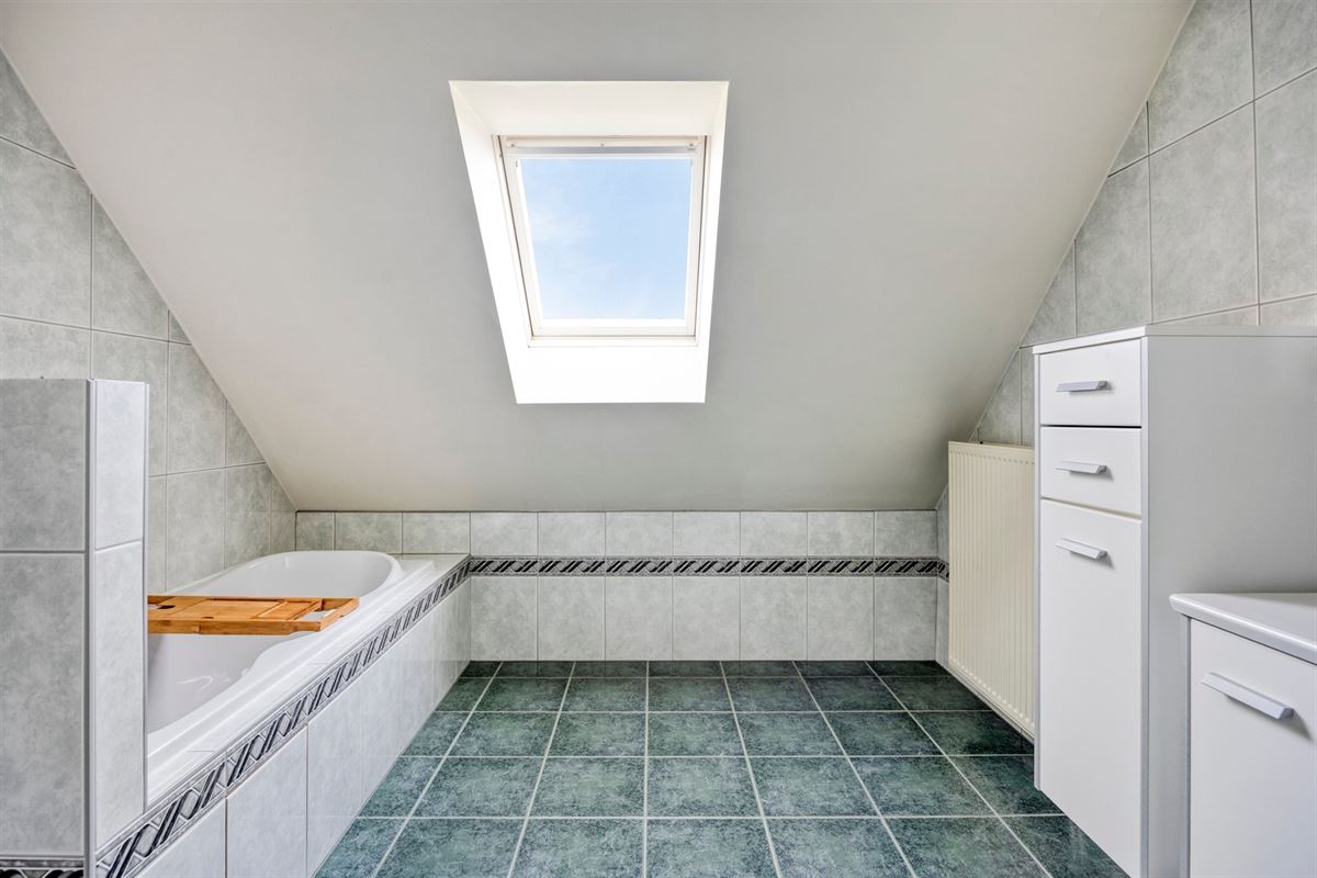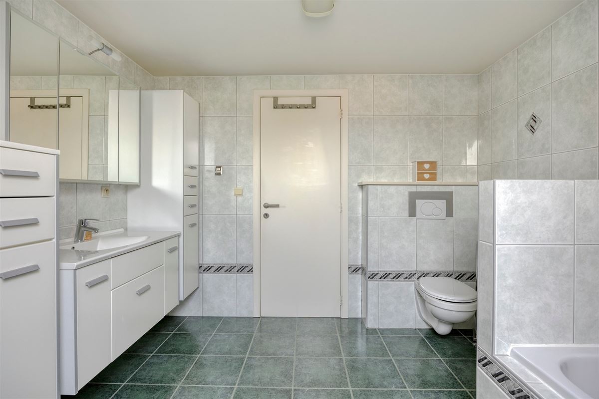 - Tweede badkamer, royaal ingericht met een wasmeubel met dubbele wastafel, spiegelkasten, kolomkasten, ligbad en toilet.