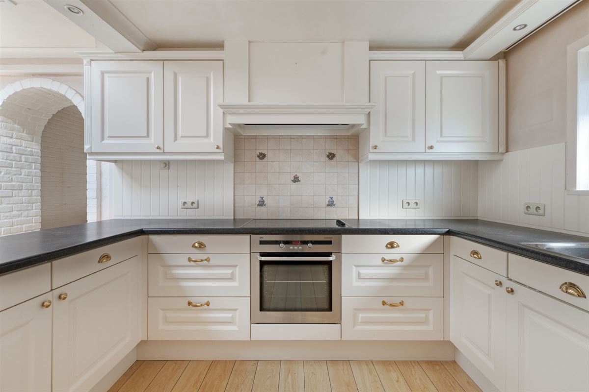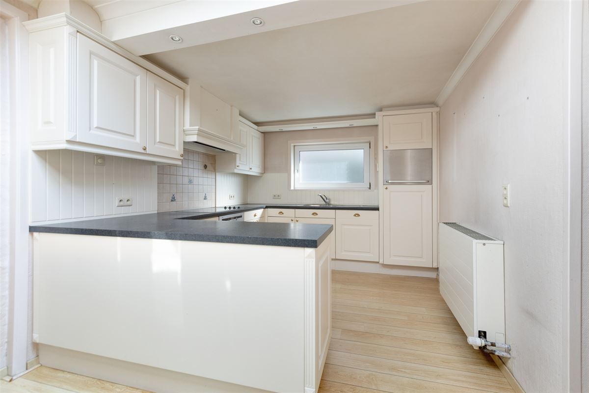 • Volledig uitgeruste keuken met houten vloer, vaste bank en hoekkast. De keuken is voorzien van een keramische kookplaat met dampkap, oven, koelkast, vaatwasser en anderhalve spoeltafel.