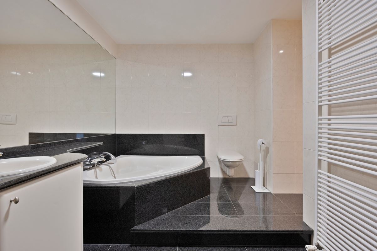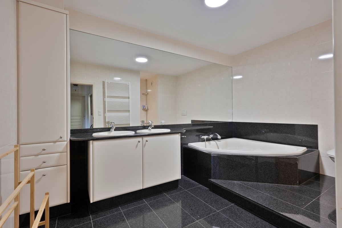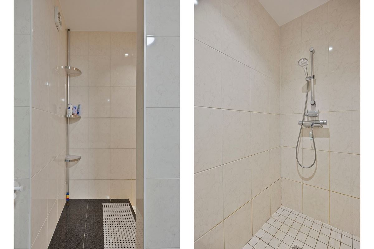 • Badkamer voorzien van dubbele wastafel, kolomkast, douche, bad en toilet.