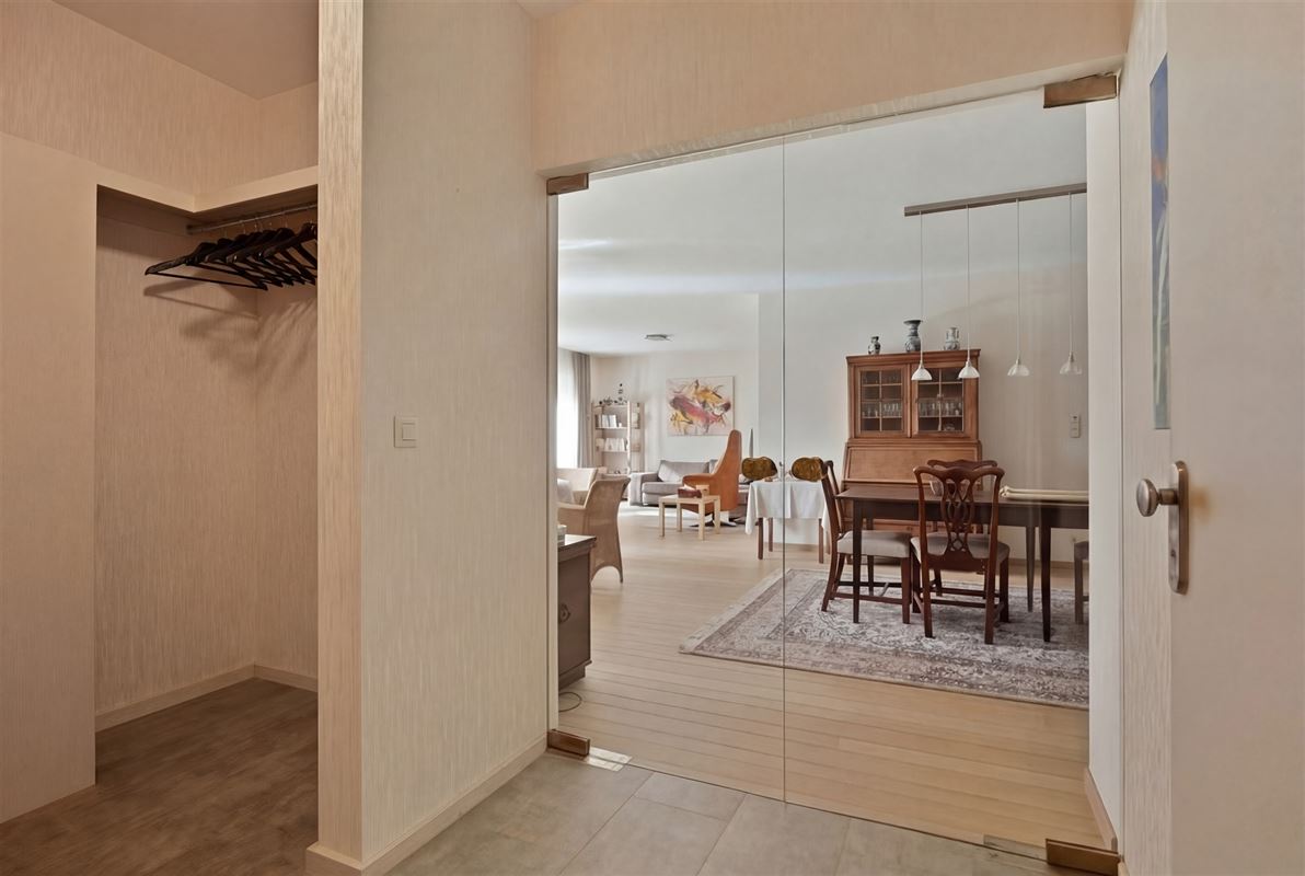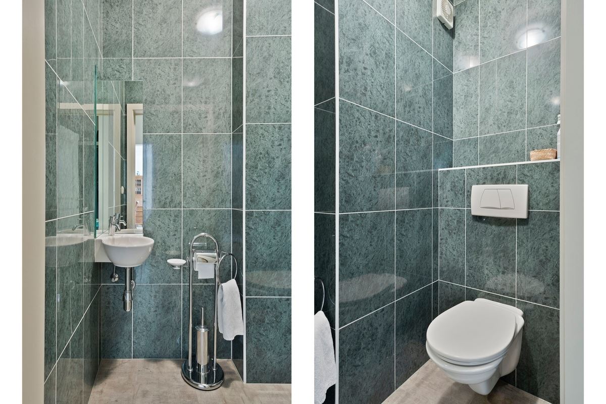 • Ruime inkomhal met vestiaireruimte, gastentoilet met fonteintje en verluchtingssysteem en toegang tot de leefruimte via een dubbele glazen deur.