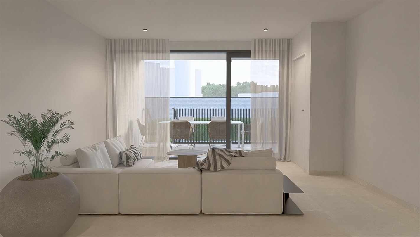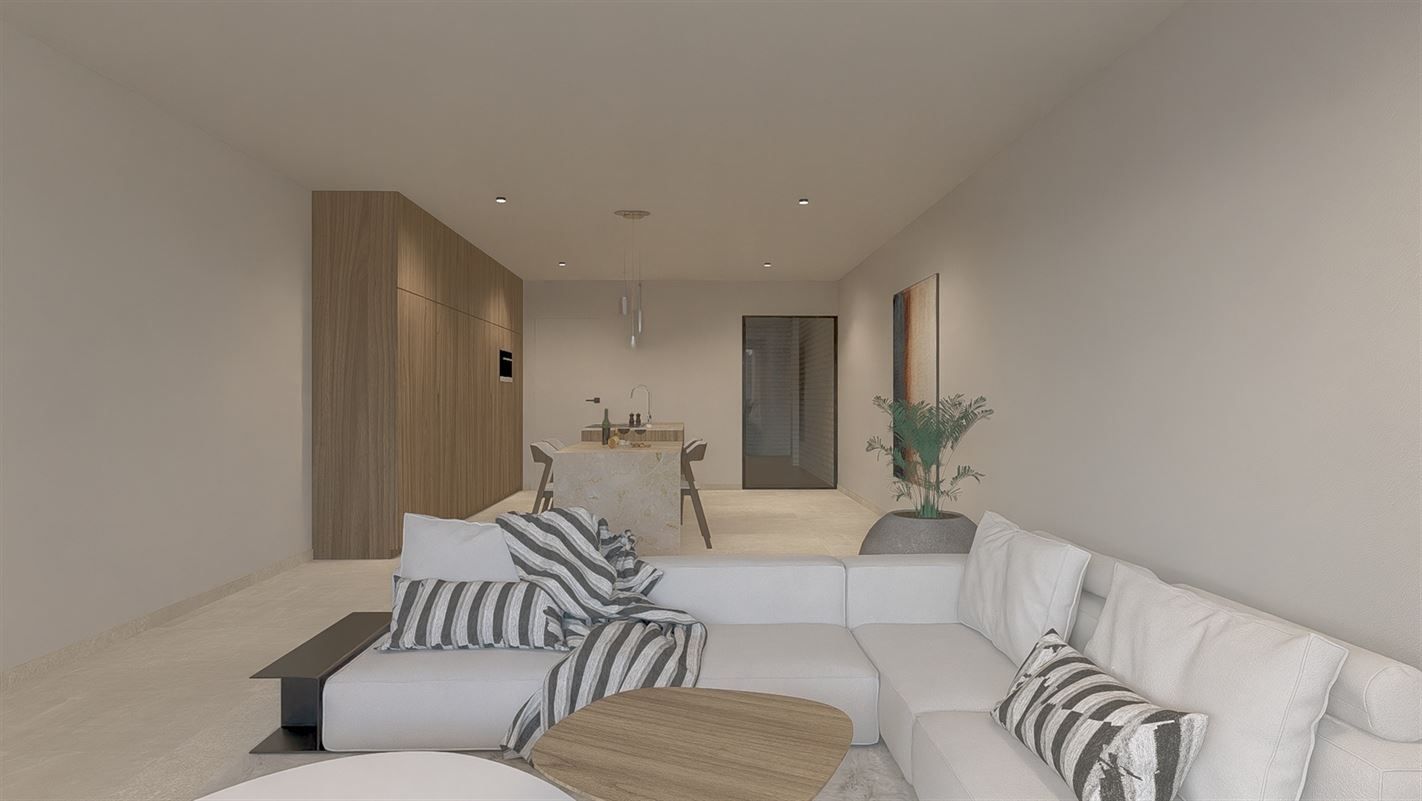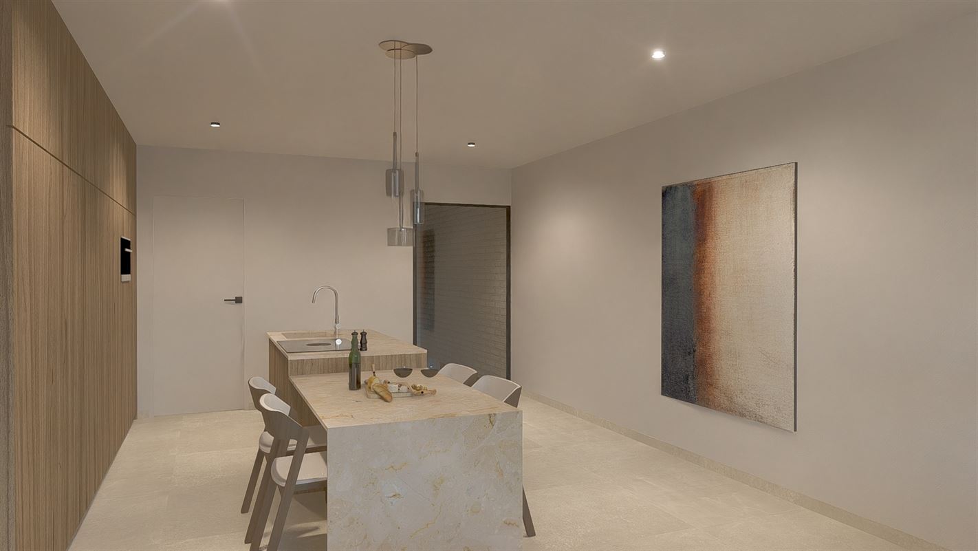 - Lichtrijke leefruimte met open keuken, eetplaats en zithoek. Afwerking naar eigen smaak te kiezen.