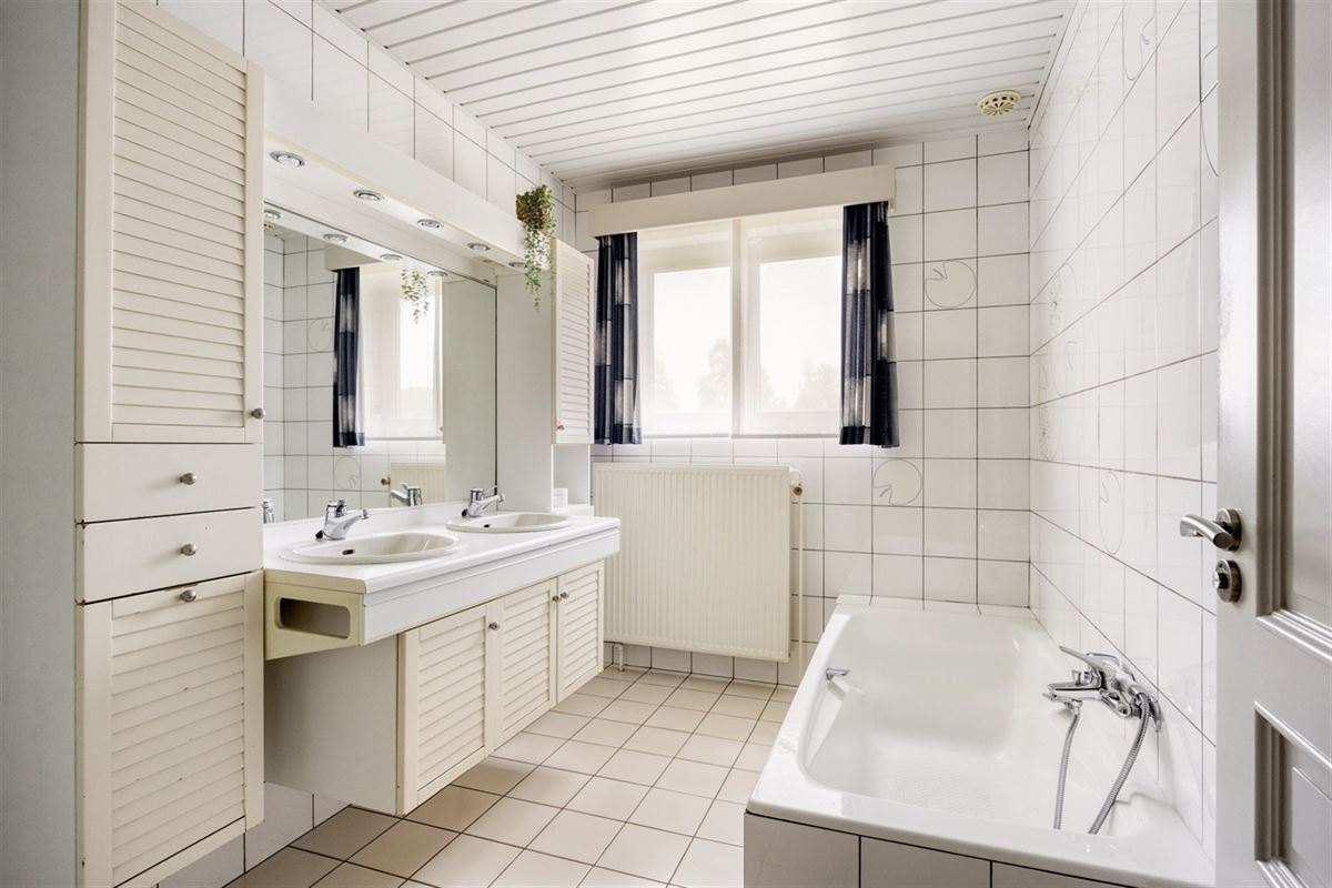 • Badkamer, betegeld en uitgerust met ligbad, douchecabine en wasmeubel met dubbele wastafel en kolomkasten.