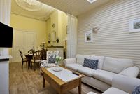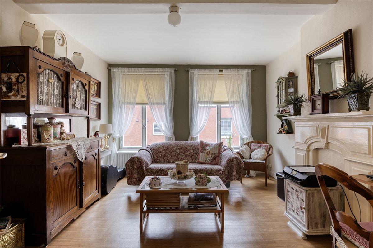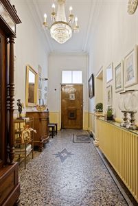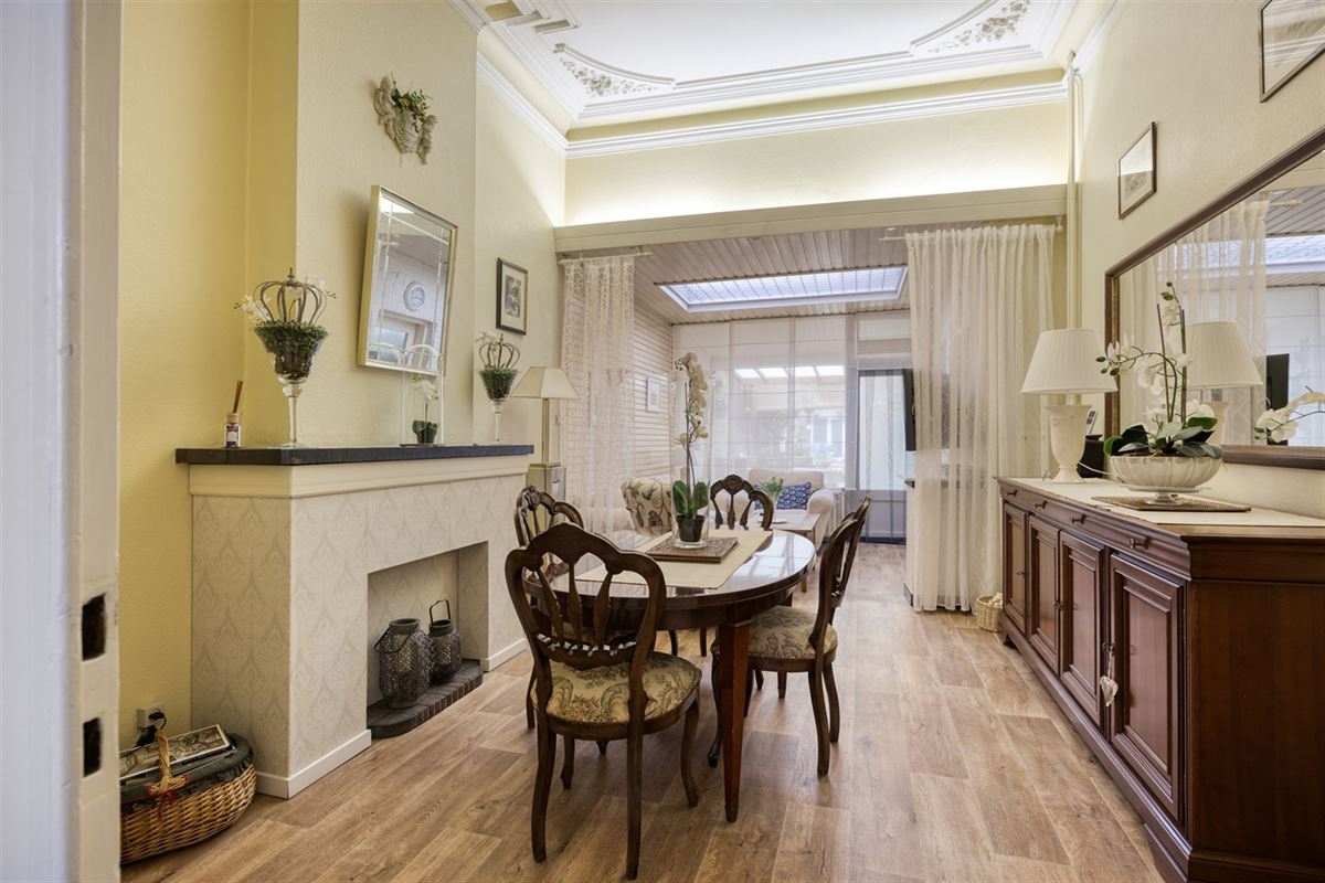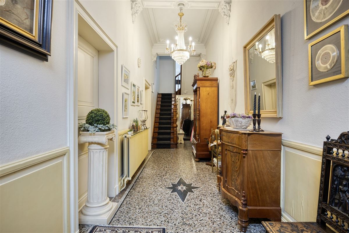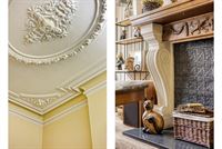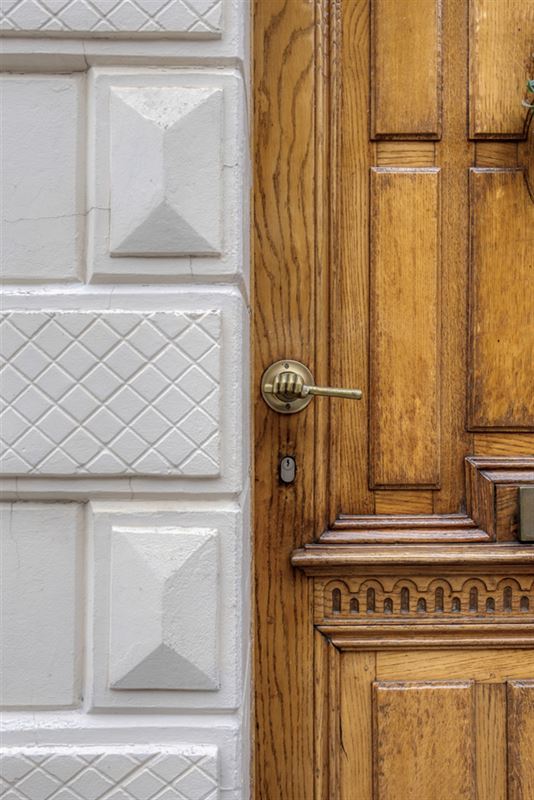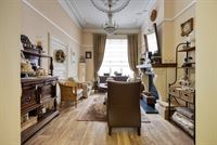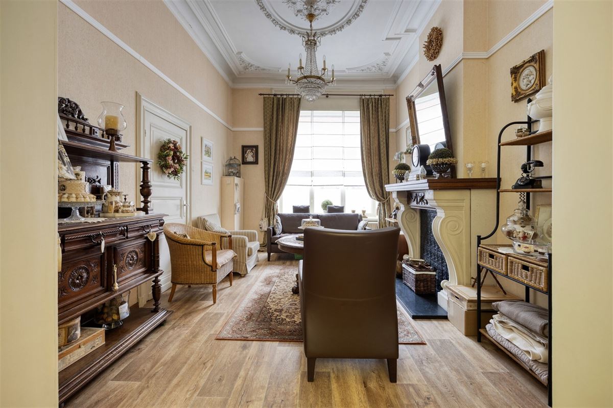 • Leefruimte: stijlvolle en sfeervolle leefruimte die momenteel is opgedeeld in twee kamers, gescheiden door een dubbele houten deur. De hoge plafonds met sierlijsten en sierhaarden geven deze ruimtes extra allure. Via de leefruimte is er tevens doorgang naar de keuken en de gezellige buitenruimte.