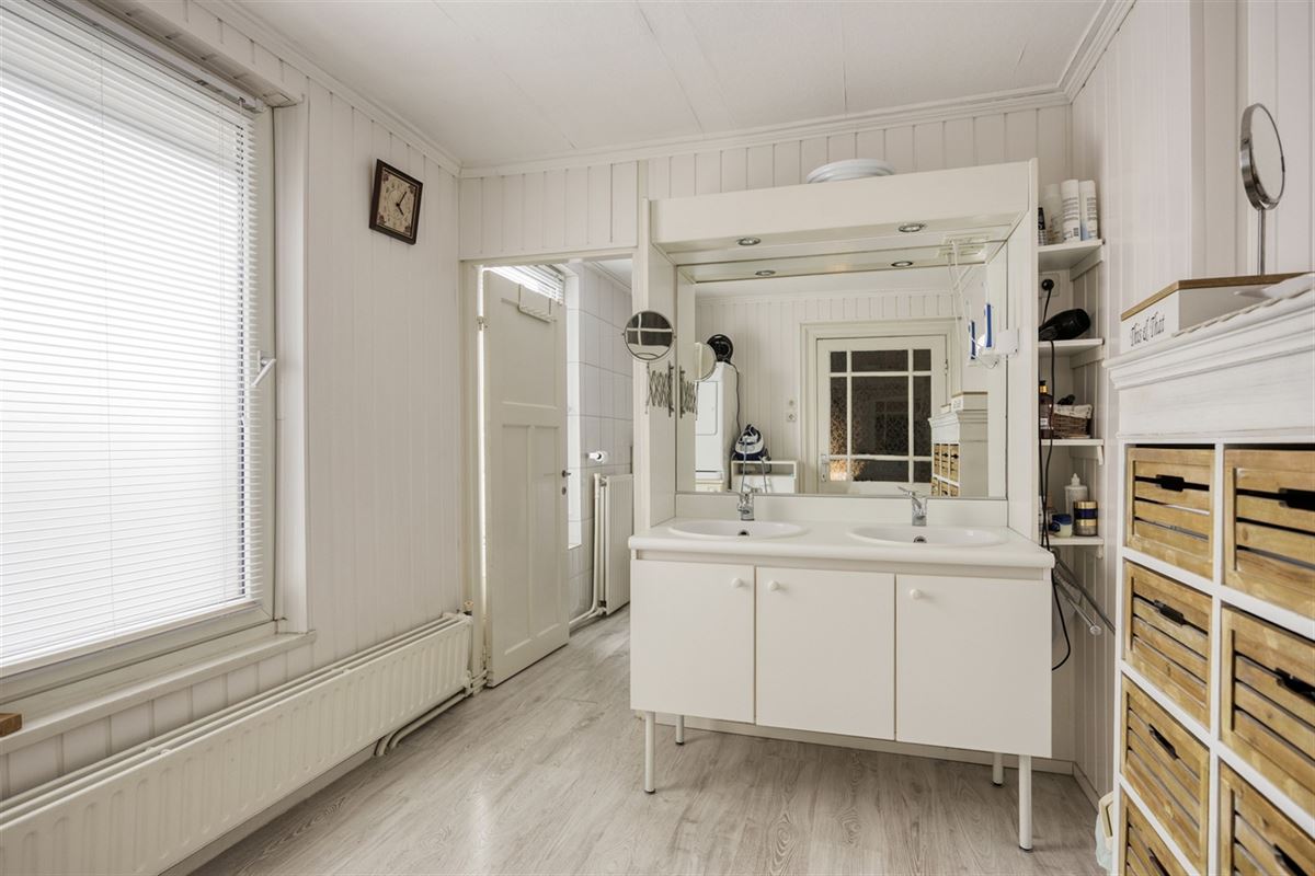 • Overloop met badkamer voorzien van een wasmeubel met dubbele wastafel en kolomkasten, aansluiting voor wasmachine en droogkast, ligbad, toilet en extra wastafel.