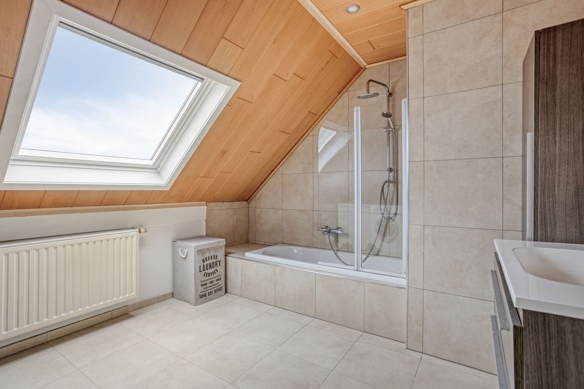 • Ruime slaapkamer (+/-18m2) voorzien van een dakvenster.