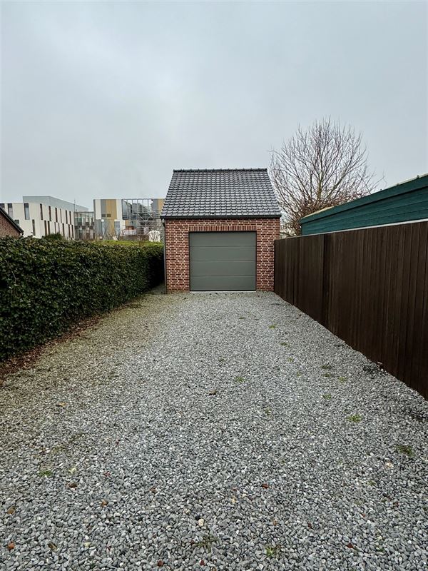 - Garage met sectionaal poort en aparte deur aan linkerzijde.