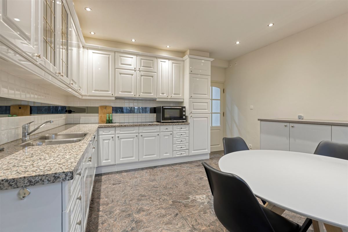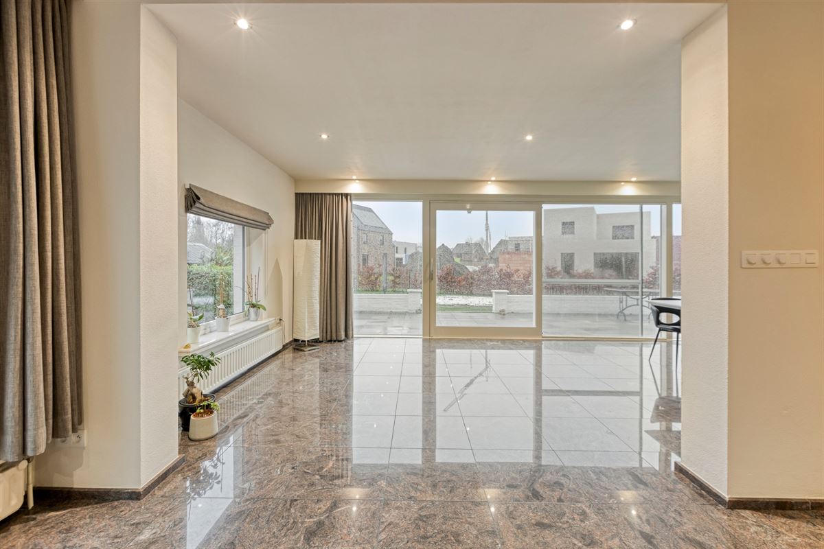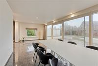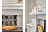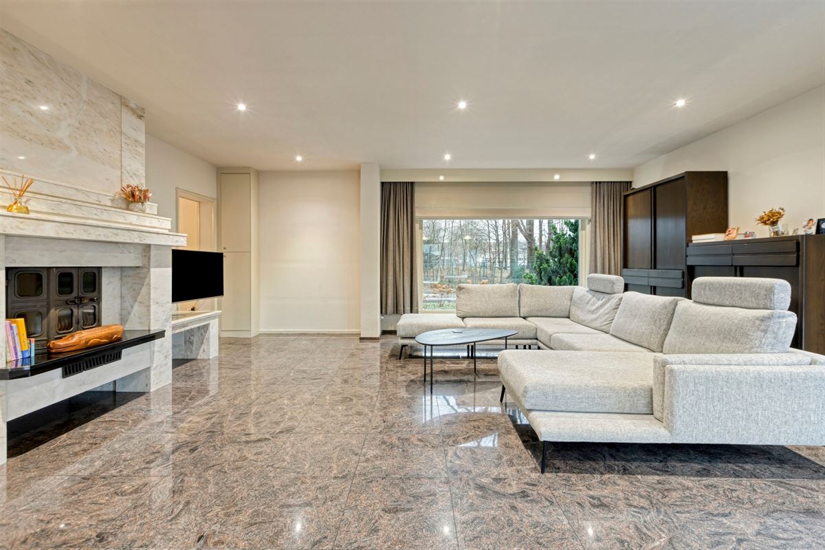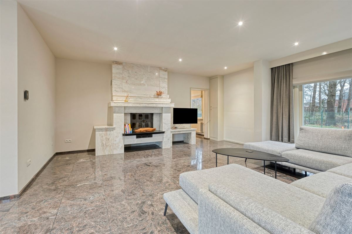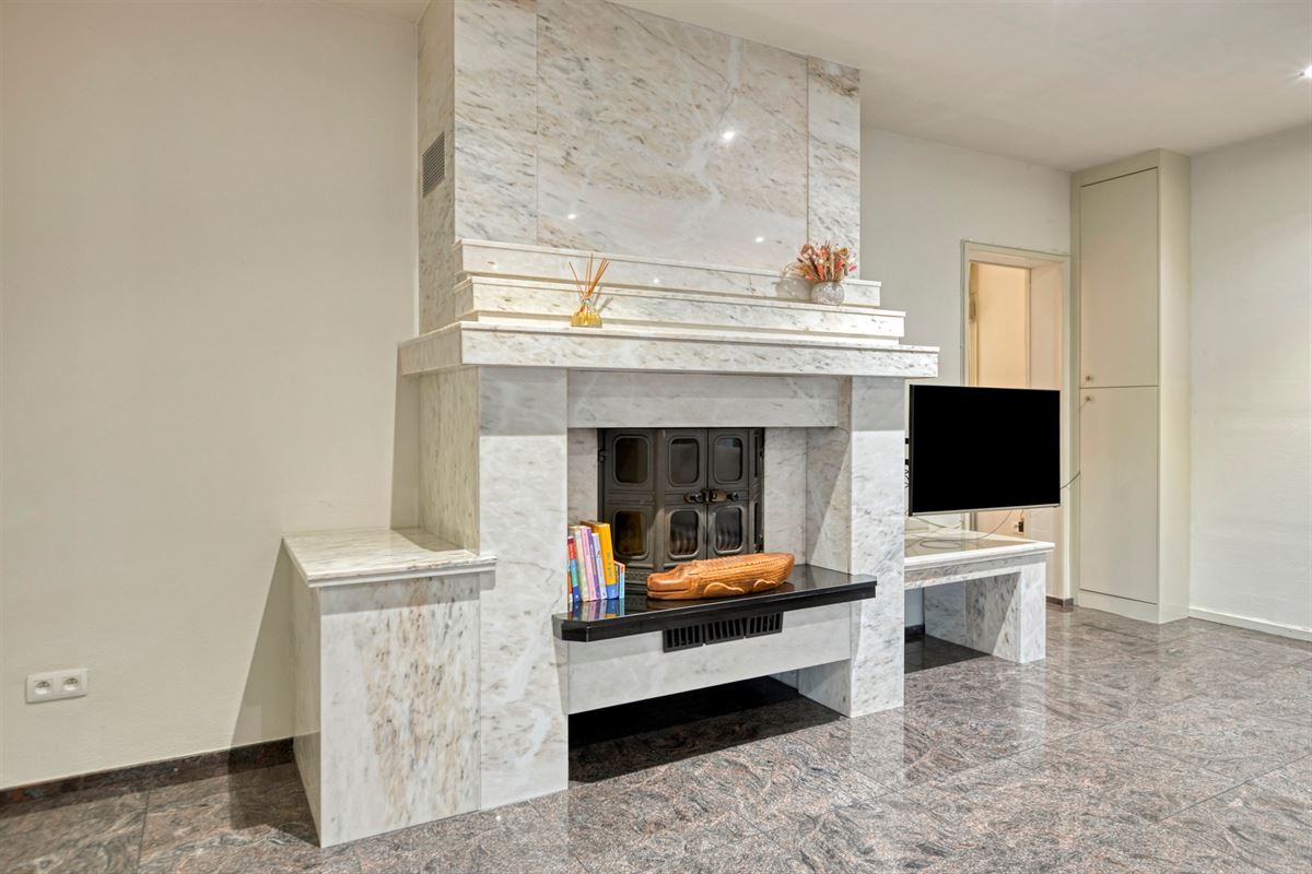 - Zeer ruime leefruimte, opgedeeld in zit- en eethoek met grote raampartijen, waardoor een overvloed aan natuurlijk licht binnenvalt. De leefruimte is tevens voorzien van een grote schuifpui aan de achterzijde met rechtstreekse toegang tot het terras en van een gezellige inbouwhaard met marmeren omkasting.
