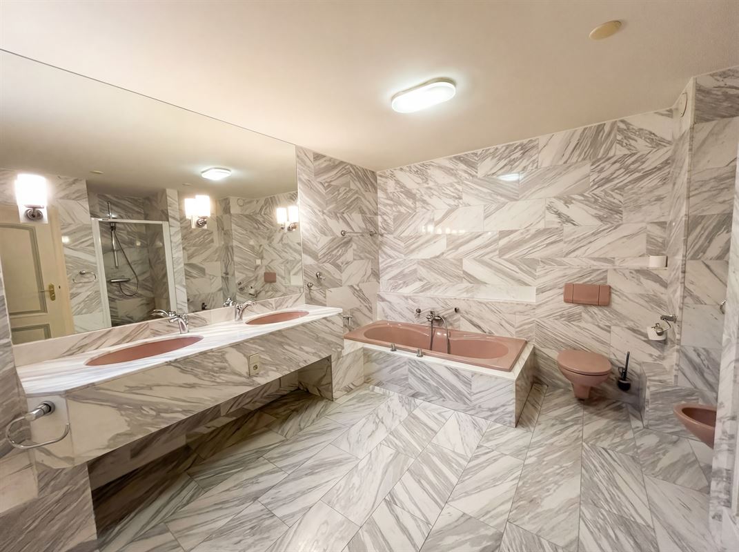 - Badkamer voorzien van een dubbele wastafel, ligbad, douchecabine en toilet.