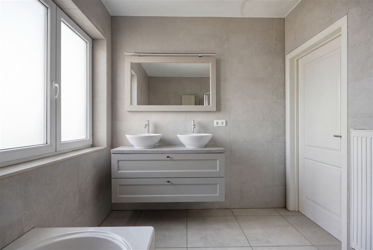- Badkamer, volledig betegeld en voorzien van een wasmeubel met dubbele wastafel, ligbad,douche, toilet en kolomkast.