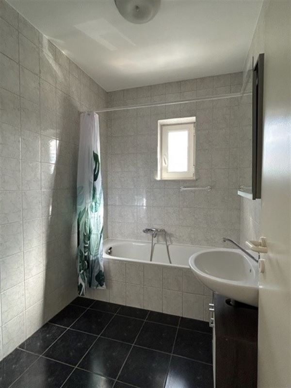 - Badkamer met wasmeubel, ligbad en aansluiting voor wasmachine.