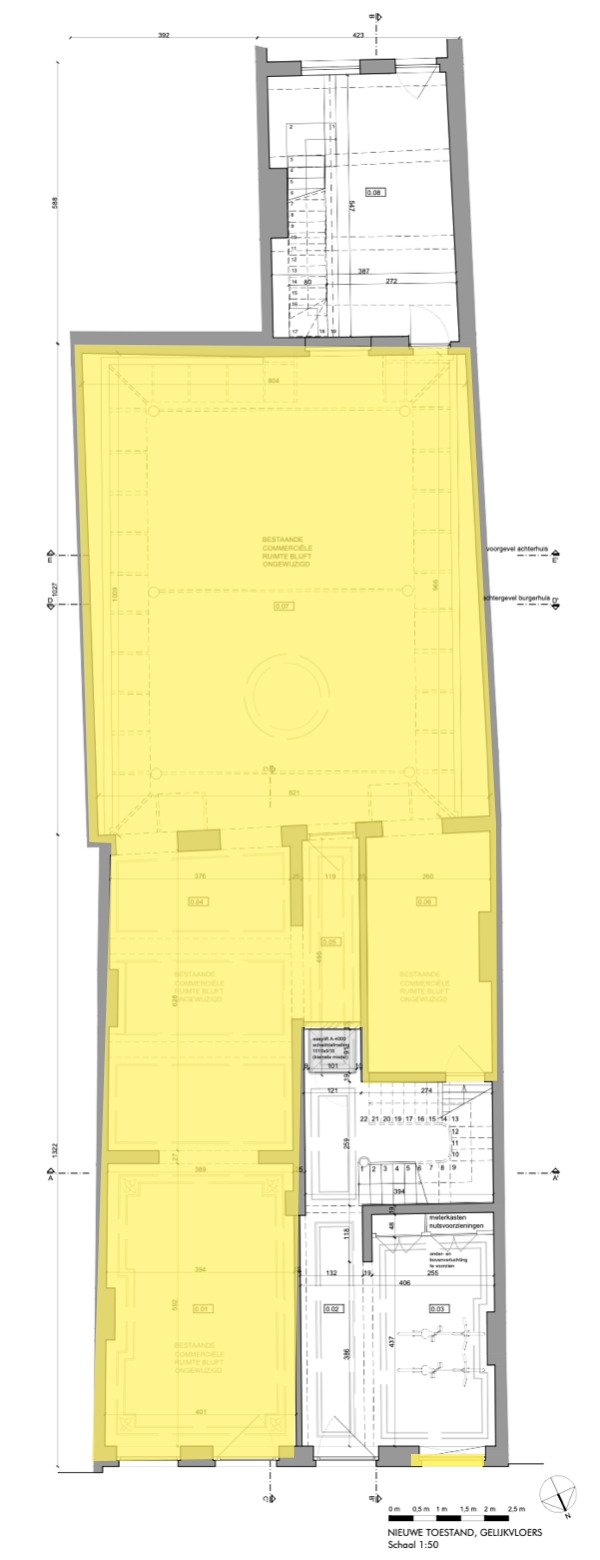 De bovenliggende verdiepingen worden momenteel gerenoveerd tot twee stijlvolle appartementen met zuidgerichte terrassen en lift. Dit zal voor extra uitstraling van de handelsruimte zorgen.