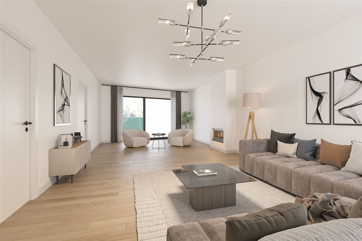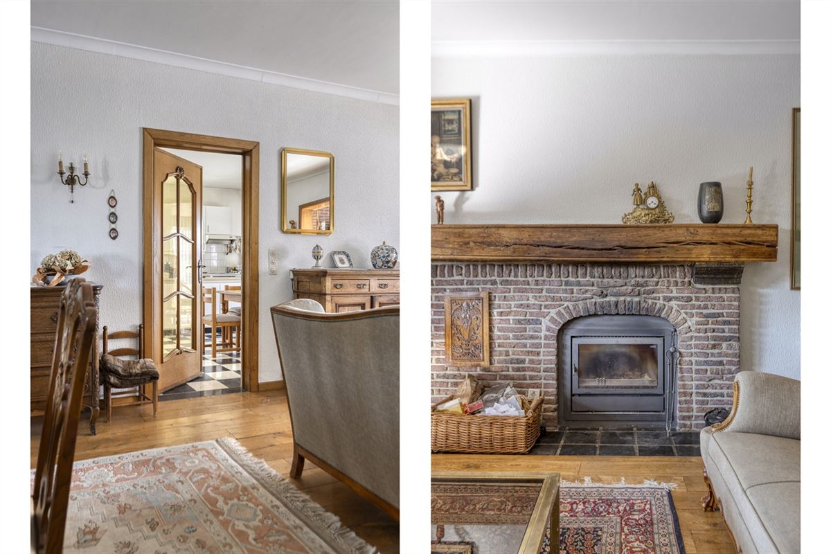 - Royale leefruimte voorzien van parketvloer, opgedeeld in zit- en eethoek met toegang tot veranda en keuken. De leefruimte is uitgerust met een functionele FLAM-haard.