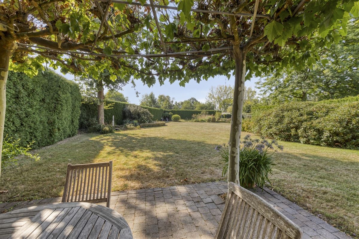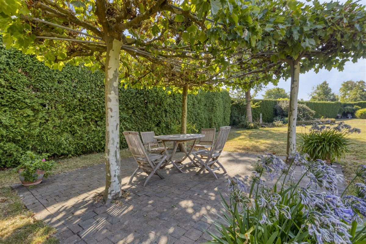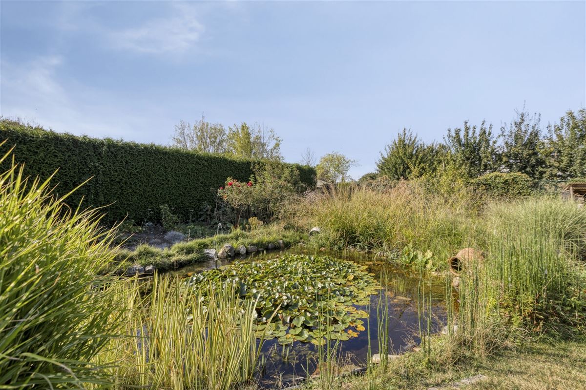 - Zeer ruime achtertuin voorzien van een prachtig beklinkerd terras, deels overdekt met platanen, tuinhuis en een vijver met fontein.