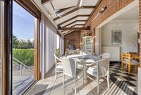 - Veranda met tegelvloer, gashaard, 2 dakramen en grote schuiframen met directe toegang naar het terras. De veranda geniet van een prachtig zicht op de achterliggende tuin.