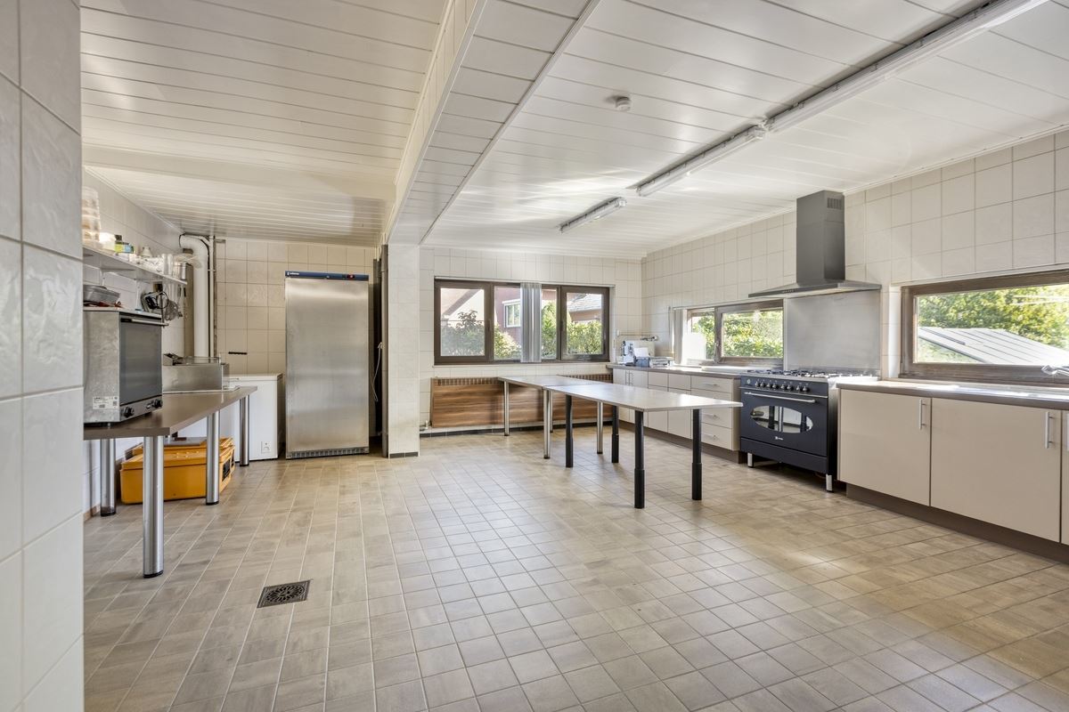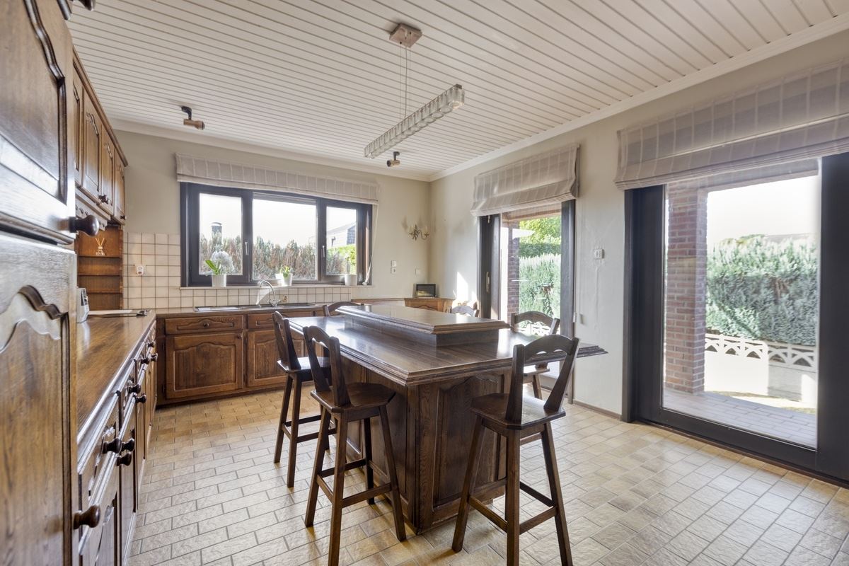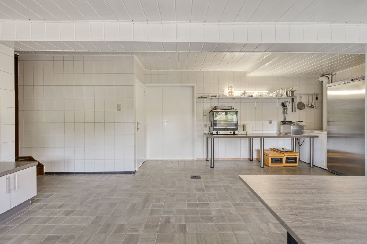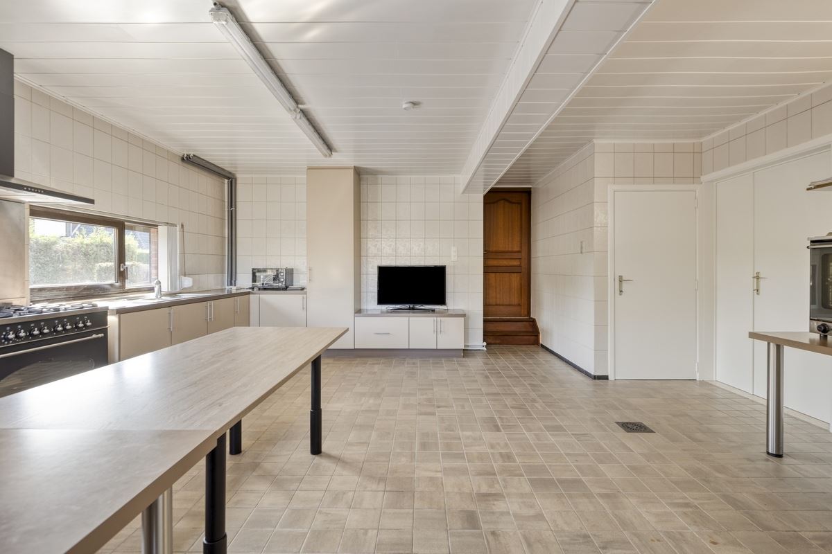 - Polyvalente ruimte voorzien van inbouwkasten, dubbele spoeltafel, 6-pits gasfornuis van M-system met oven en dampkap. Vanuit deze ruimte is er toegang tot zowel de kelder als de garage. De ruimte, momenteel dienst doende als werkplaats biedt zeer veel mogelijkheden: geschikt om een vrij beroep, praktijkruimte, kapsalon, etc. uit te oefenen, met parkeerplaats op één van de twee opritten en voldoende parkeergelegenheid aan de voorzijde. Kan anderzijds ook perfect betrokken worden bij de woonkamer of eenvoudig ingericht worden als tweede garage.