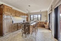 - Keuken uitgerust met dubbele spoeltafel, keramisch kookplaat met 2 kookzones, ingebouwde friteuse, aansluiting voor koelkast. De keuken is voorzien van veel raampartijen die zorgen voor natuurlijke lichtinval, waaronder ook 2 grote ramen tot op de grond met toegang tot het overdekt terras aan de zijkant.