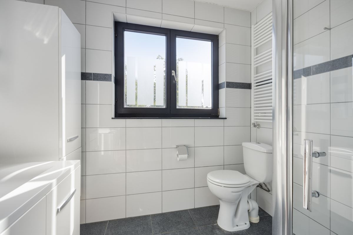 • Badkamer voorzien van wasmeubel met wastafel, douchecabine en toilet.